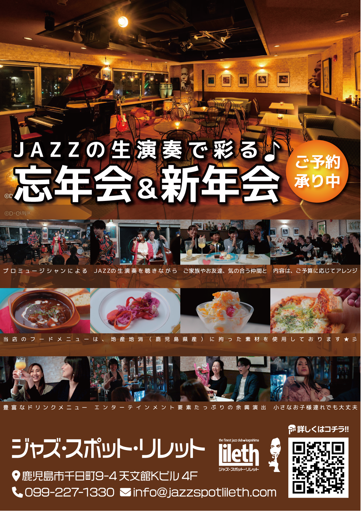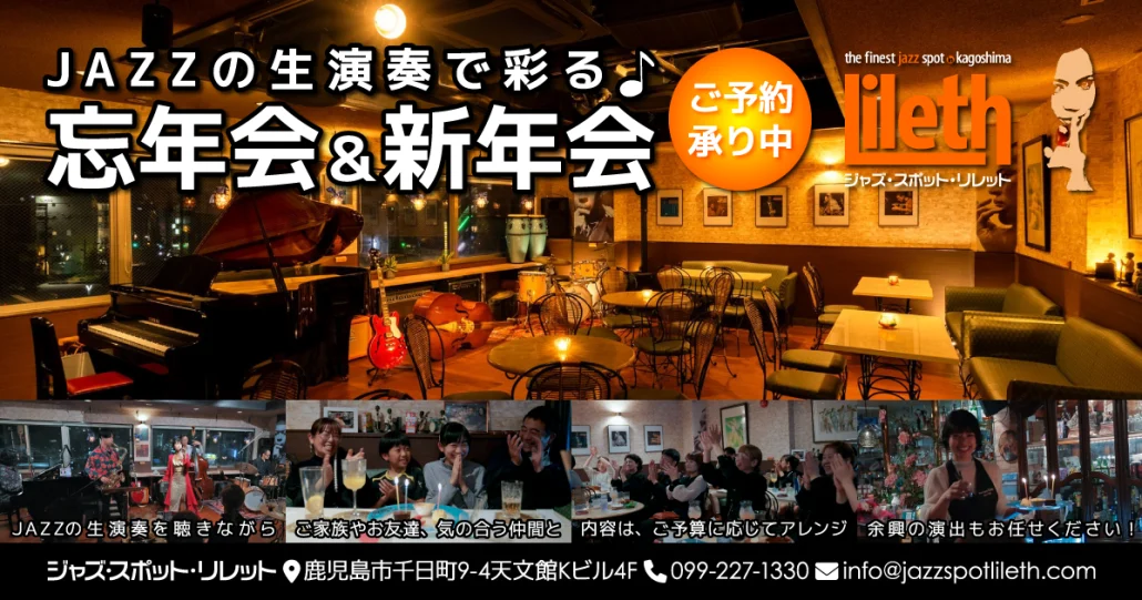 創業1992年9月4日、鹿児島の繁華街”天文館”で33年続く 老舗ジャズクラブ(ライブハウス・ジャズバー) Jazz Spot Lileth(ジャズスポット・リレット)♪鹿児島で唯一、毎日、ジャズの生演奏が聴けるお店で、お洒落で贅沢な一時を過ごしませんか?