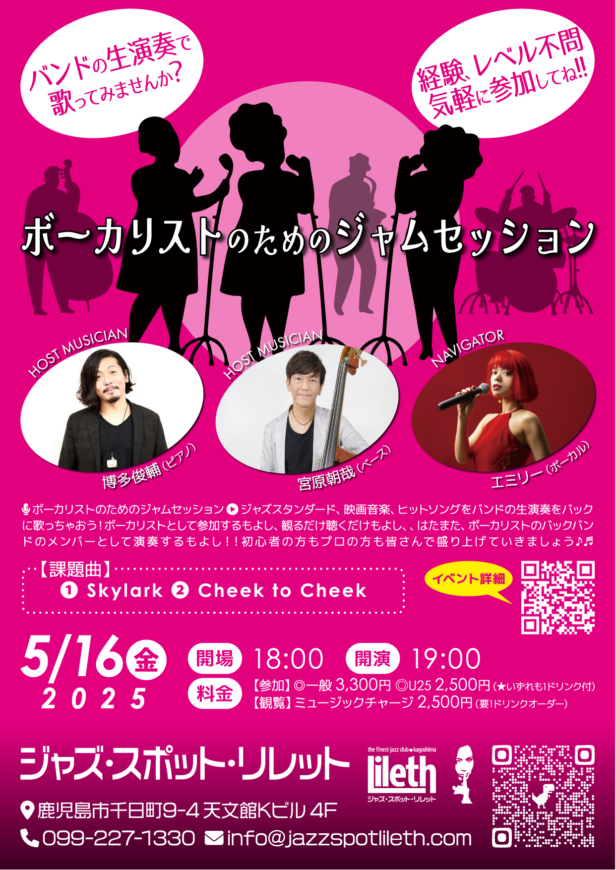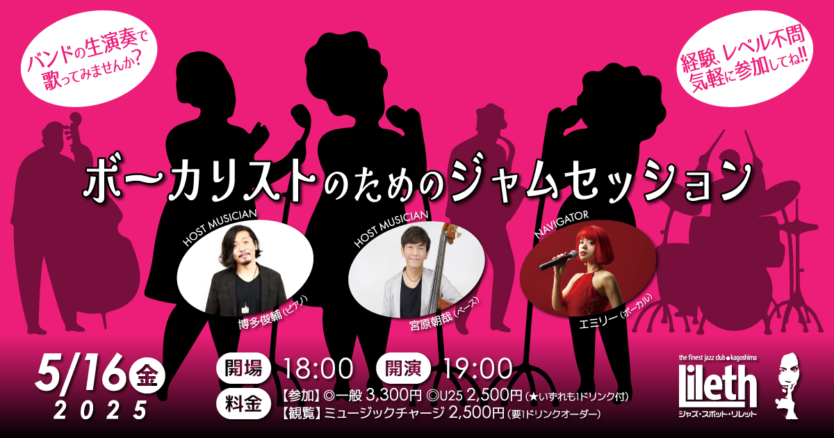 ボーカリストとして参加するもよし、観るだけ聴くだけでもよし、はたまた、ボーカリストのバックバンドメンバーとして演奏するもよし❣