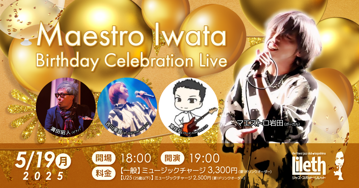 - 【U25(25歳以下)】ミュージックチャージ 2,500円(要1ドリンクオーダー)