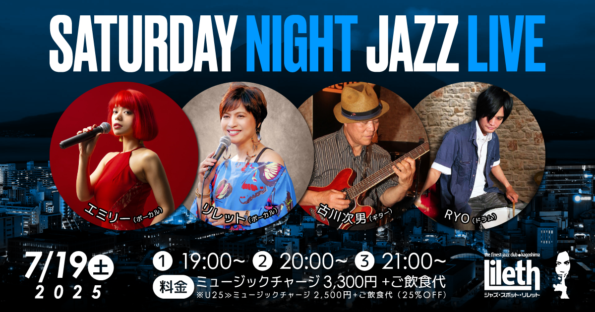 • 【U25(25歳以下)】ミュージックチャージ 2,500円 +ご飲食代(25%OFF)
