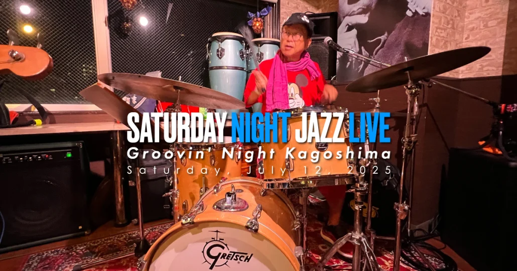 Groovin’ Night Kagoshima on SATURDAY NIGHT LIVE 250712 2025年7月12日 jazzspotlileth ライブレポート 0 出演者 🥁森田孝一郎(ドラム) 🎹博多俊輔(ピアノ) 🎸西野龍司(ベース) 🎤藤田香織(ゲストボーカル) Tweet bassdrumsjazzlivepianovocalジャズドラムピアノベースボーカルライブ博多俊輔天文館森田孝一郎生演奏藤田香織西野龍司鹿児島